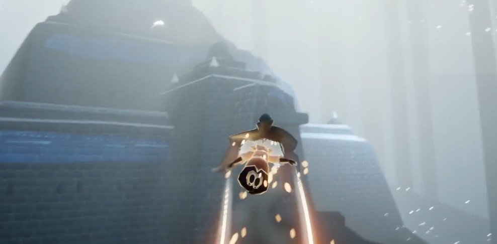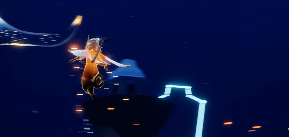 抵达目标区域后,你需要抬头望向天空寻找橙色光芒,火之灵会在空中较高的位置飞行。由于它的位置较高,一个比较省力的方法是先点燃场景中的亭子灯火或完成铺路,让连绵的雨水停下来,这样可以减少你在空中飞行时的能量消耗。之后你可以选择站在地面一棵倒下的巨大树干上等待,火之灵的飞行轨迹会穿过这附近,当它降低高度时抓住时机起飞触碰即可完成收集。如果你能量充沛,也可以直接飞向高空主动触碰它。